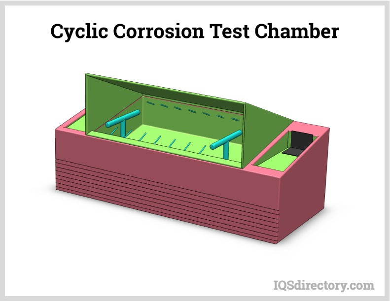 Cyclic Corrosion Testing accelerates the corrosion and degradation process in a controlled laboratory environment. Widely used in the auto industry and heavy manufacturing, this test submerges materials, exposes them to salt spray, or cycles them through wet/dry phases to simulate seasonal weather conditions and assess protective coatings or material performance over extended periods.