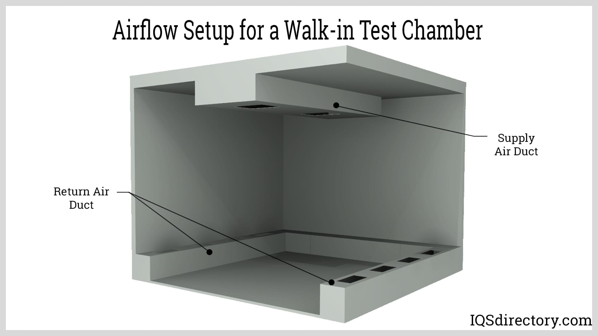 As can be determined by the nature of the work performed by walk-in test chambers, proper air circulation is critical. The heating, cooling, and air circulation systems work in unison to create forced convection that simulates real world conditions. The speed of the airflow allows for quicker temperature adjustments with 1000 feet per minute (FPM) being the highest recommended airflow rate.
