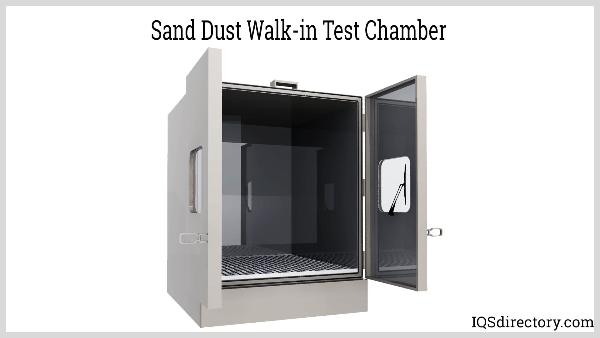 The suspended particles in the chamber are blown and circulated by air blown up from the bottom of the chamber to replicate the conditions of a sandstorm or dust filled environment. The duration of the testing conditions is determined in accordance with the objectives of the tests. Each instance provides data to evaluate the durability, performance, and reliability of a product. Sand dust proof walk-in test chambers can have a capacity of 1500 L and 2000 L (396.26 gal and 528.344 gal).