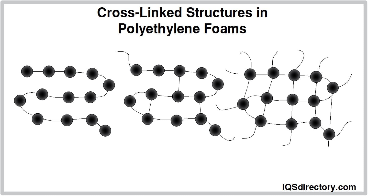The types of polyethylene foams are cross-linked polyethylene foams, expanded polyethylene foams, and extruded polyethylene foams. Polyethylene foams may be low-density or high-density foam.
