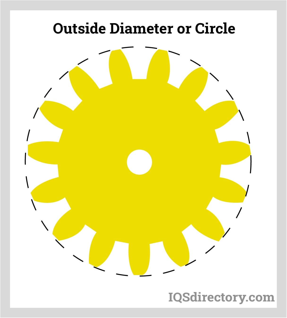 The outside diameter, or OD, is the total diameter of a spur gear measured from the outermost tips of the gear teeth, passing through its center. This measurement is essential for ensuring proper gear alignment within assemblies, as well as for calculating maximum tooth size and designing casing or housing around gear components.
