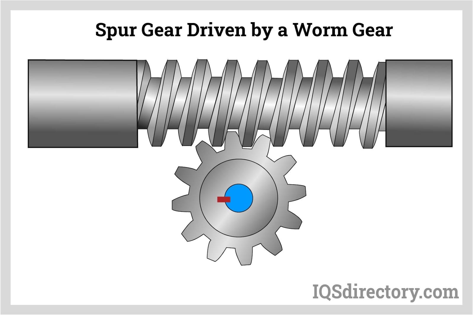Conveyor systems have to move at a controlled speed, producing high torque. Spur gears are used as a reliable means for altering the torque of the system. In some types, a self-locking worm gear is used to power and move the spur gear, where the worm gear is the drive gear.