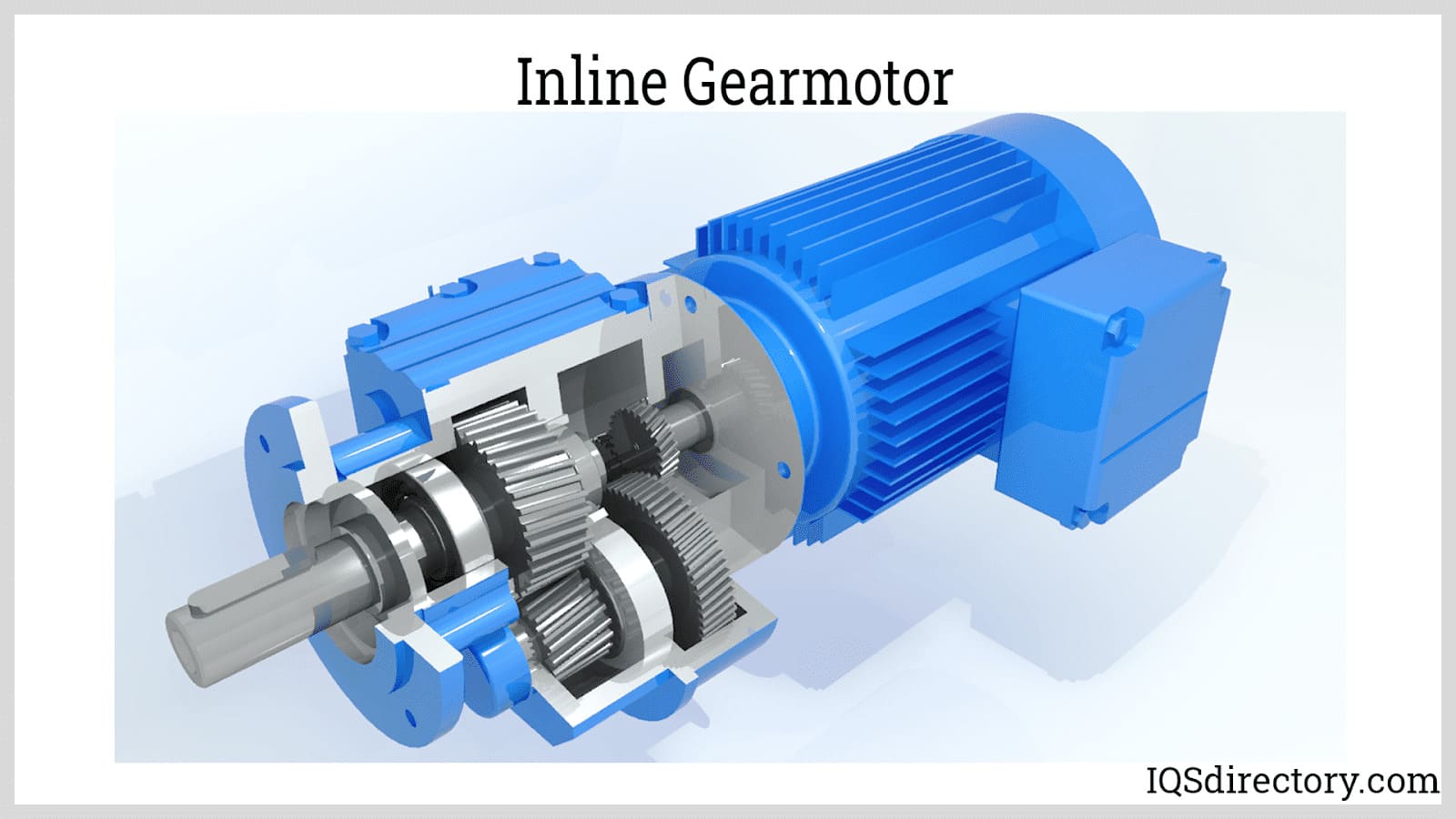 Inline gear drives are commonly employed to reduce motor speed. They are directly attached to the motor shaft and positioned adjacent to the motor. Some motor manufacturers offer integrated speed reduction gearboxes, known as gear motors, which incorporate inline gear drives within the motor assembly.