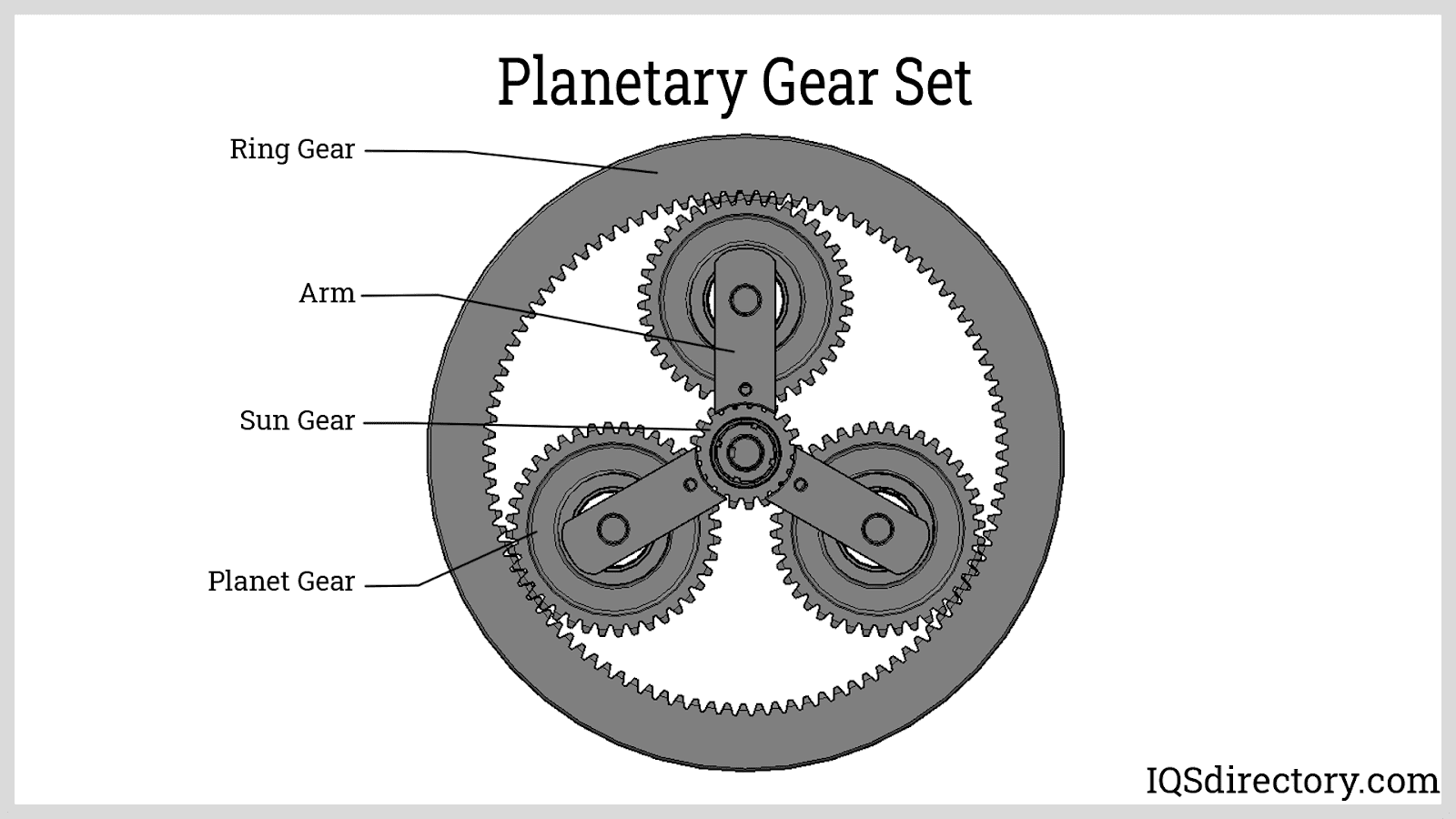 A planetary gear is an epicyclic gear that consists of a central gear, referred to as the sun gear and serves as the input gear, which has three or more gears that rotate around it that are referred to as planets...