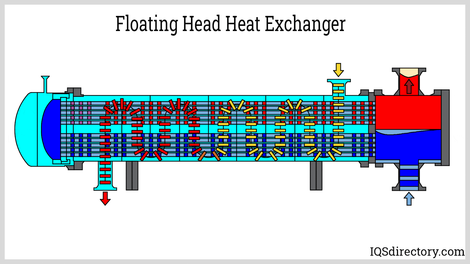 The floating head design resembles the U-tube design but without the U-shaped tubes. In this design, one end of the tubing is fixed to a stationary tube sheet, while the other end is left unattached, allowing it to expand and float freely. This flexibility enables the floating head design to handle significant temperature differences as the tubes expand. Additionally, this type of heat exchanger is easy to clean and inspect because the tubes can be conveniently removed.