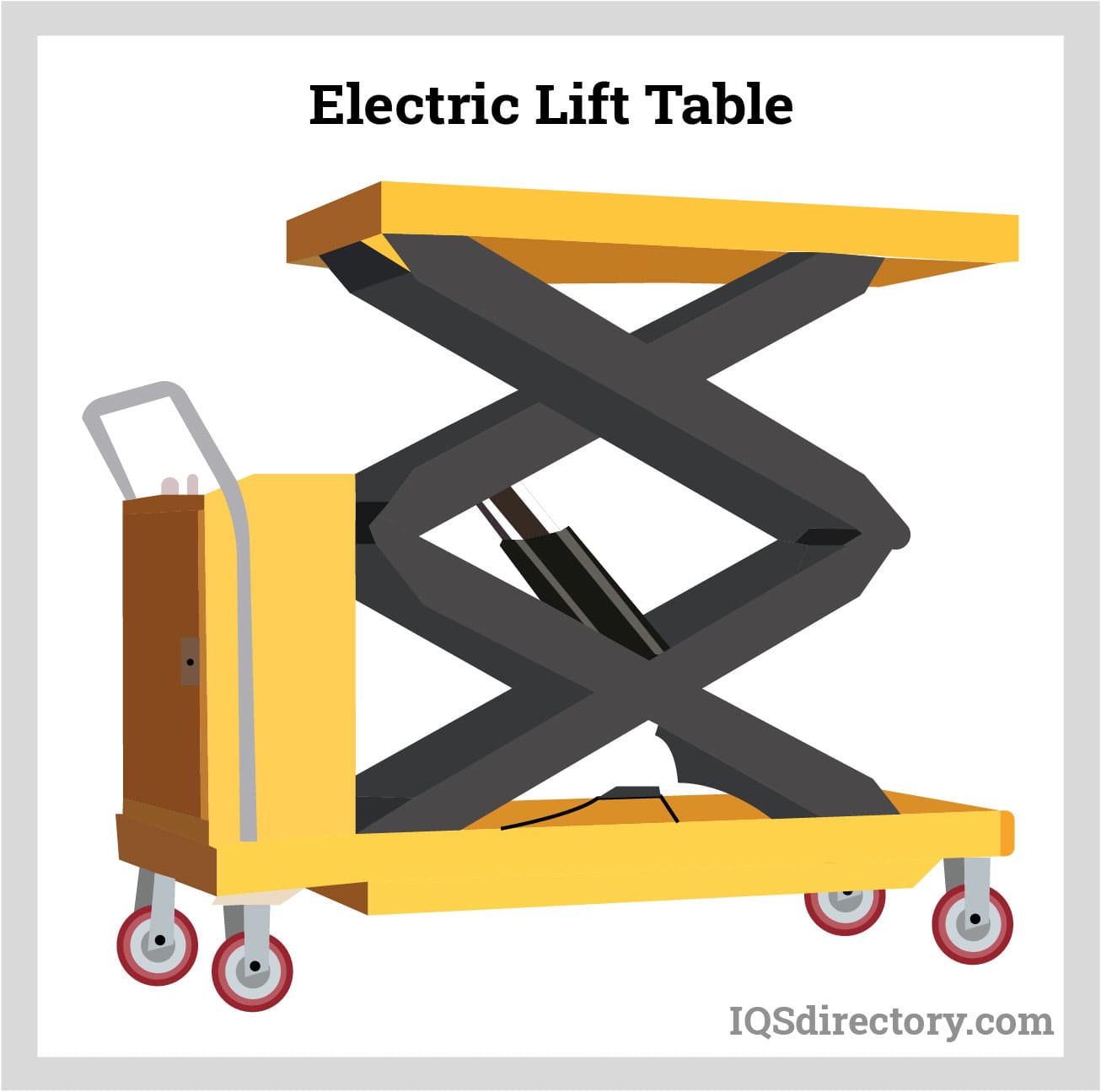 Electric lift tables use powerful electric motors, operating on either direct current (DC) or alternating current (AC), to automatically raise and lower the lifting platform with the push of a button. These electrically powered lift tables may be plugged into an electrical outlet or powered via on-board rechargeable batteries for greater flexibility and mobility. Safety features such as emergency stop switches, overload protection, and remote controls ensure operator security and ease of use. Standard configurations use 12v DC or 24v AC motors, though other voltage options are available for specialized requirements.