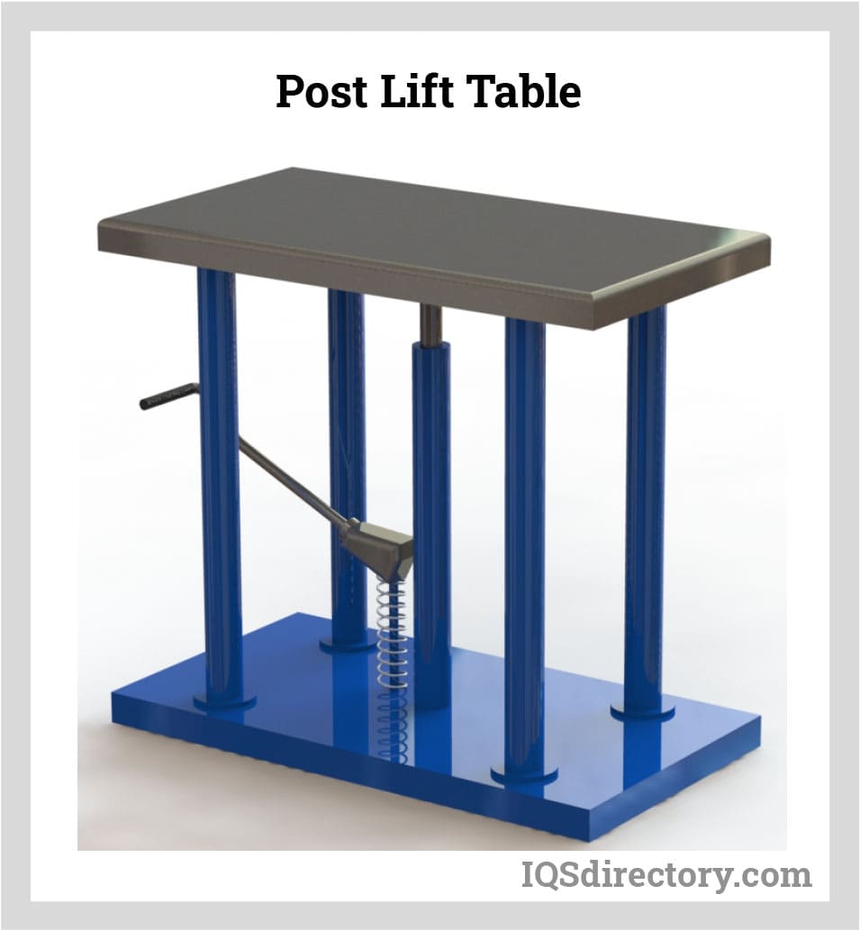 Available in multiple styles, including fixed, mobile, tilt-top, and turntable variants, post lift tables offer design flexibility to match unique workspace needs. While typically offering less vertical adjustment than scissor lifts, they can be specified for exact ergonomic requirements and accommodate custom lift mechanisms or power sources.