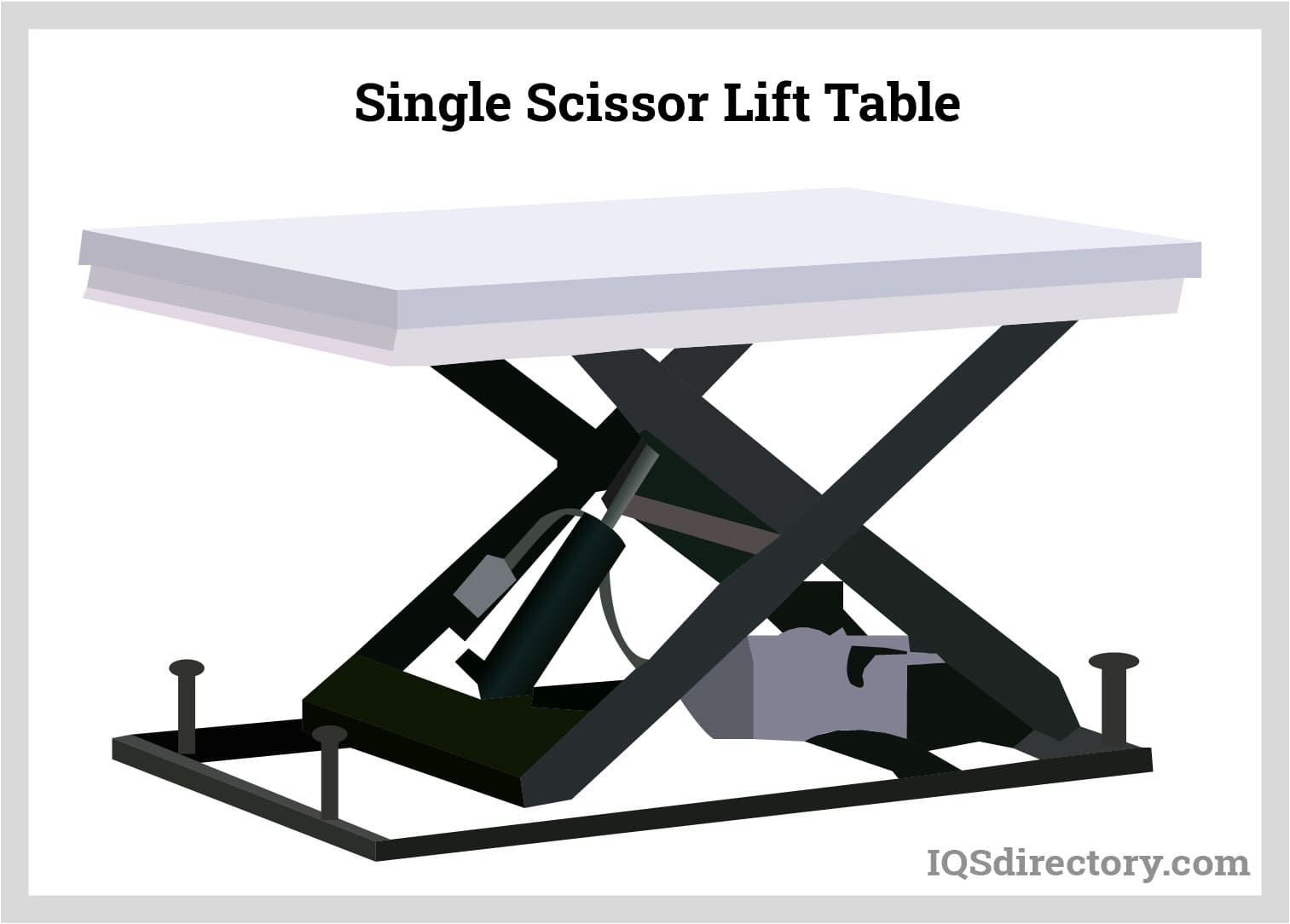 Scissor lift tables use scissor-shaped support arms, known as pantograph mechanisms, that open and close to vertically raise or lower the platform. These versatile tables can be powered by hydraulic, pneumatic, or electric systems, and can accommodate a wide range of load sizes and weights. Scissor lift platforms deliver a stable, uniform lifting surface and can be custom-tailored with different platform sizes and accessories to handle uniquely shaped loads.