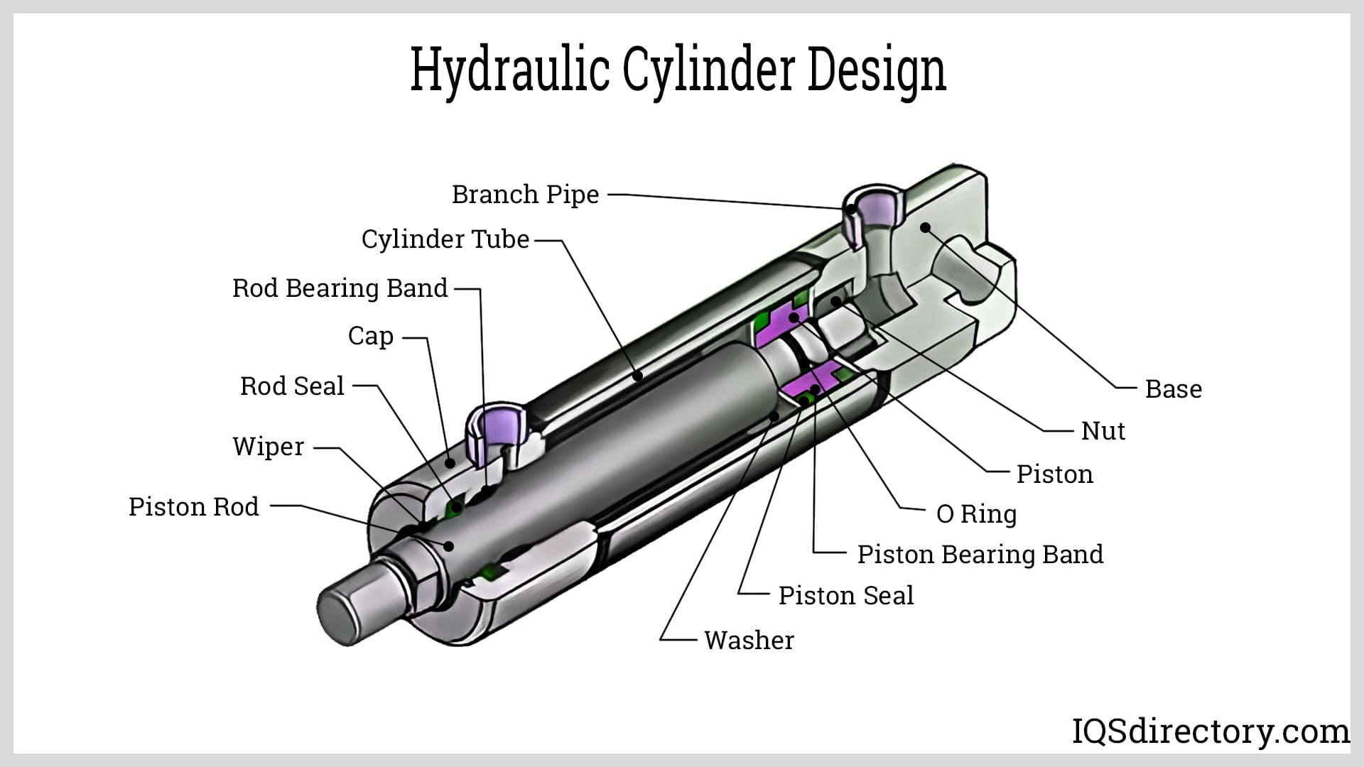 The Base - Equipment that uses the power of a hydraulic cylinder are connected to the cylinder at the base. As with other aspects of a cylinder and an important part of their use, the base is tightly sealed.