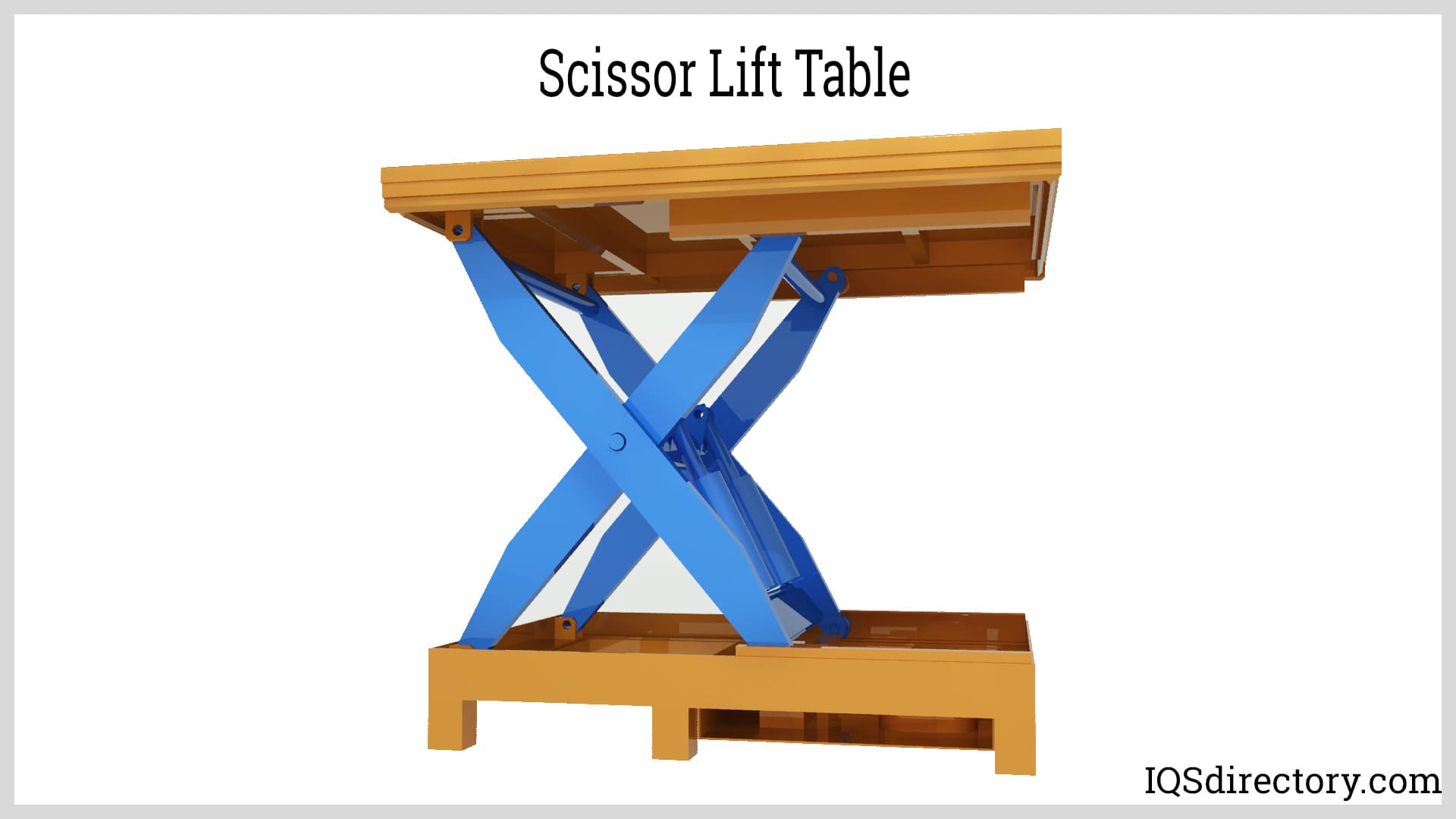 A hydraulic table operates using hydraulic pressure to raise and lower a rectangular or square surface. It features a scissor lift mechanism that easily extends and retracts. Hydraulic pressure moves a piston within a cylinder beneath the table, which is connected to the scissor lift system, causing the table to move up or down as the pressure in the cylinder is adjusted. Hydraulic tables can be designed to extend a few inches, a few feet, or more, depending on the application's requirements. For less demanding tasks, the lift mechanism can be powered by a foot pedal that generates the necessary hydraulic pressure.