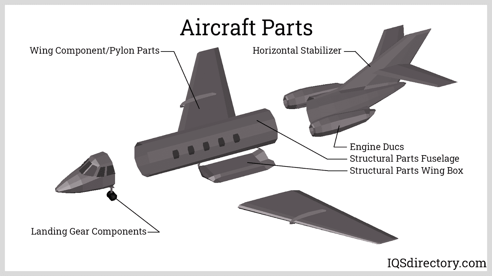 Both ferrous and nonferrous forgings are utilized in helicopters, piston-engine planes, commercial airliners, and supersonic military jets. Aircraft are engineered with press forged components and may include over 400 distinct forged parts. Examples are shown in the diagram below.