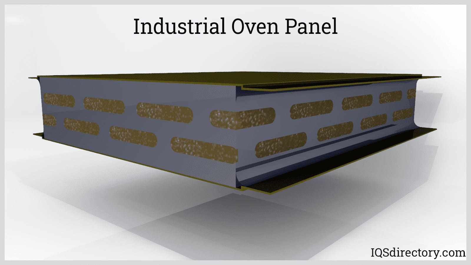 The durability of an industrial oven relies on its wall panels and frame, which help to minimize heat transfer to the exterior. The side view of the industrial oven panel shown below demonstrates how insulation is installed between the aluminized metal sheets.