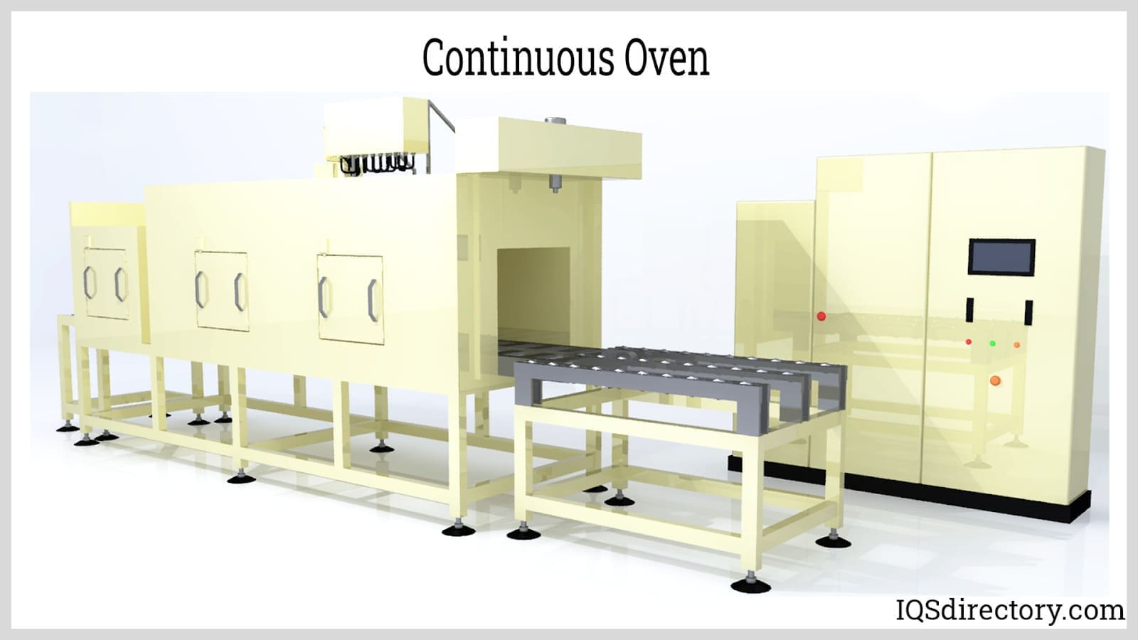 Continuous ovens find applications across various industries such as aerospace, defense, fiber optics, wood and metal finishing, plastics, rubber, industrial processing, pharmaceuticals, electronics, printing, and automotive. Their robust performance is attributed to their welded steel construction and heavy-duty interiors, which can achieve temperatures up to 676°C (1250°F). The design of continuous ovens can vary widely, including configurations such as flat conveyor belts, chain conveyors, ferris wheels, carousels, overhead trolleys, chain-on-edge conveyors, spindles, slats, strip cure systems, print plates, pusher ovens, dog beams, and wash draws.