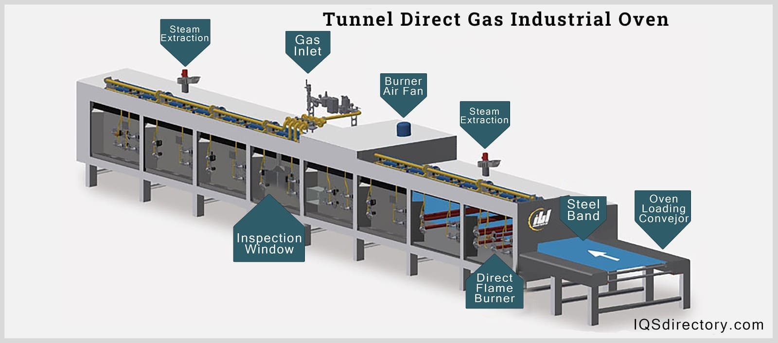 Tunnel ovens are available in various types and designs tailored to specific applications. They are known for their minimal turnaround time between batches and operate on a continuous cycle. Major industries that utilize tunnel ovens include food production and automotive manufacturing.