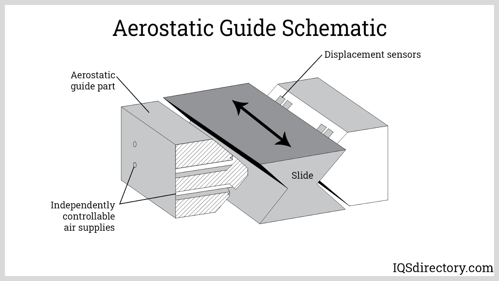 Hydrostatic Lubrication Bearings: Hydrostatic bearings use a pressurized fluid film, typically oil, to separate sliding surfaces. With a pump providing constant lubricant flow, these linear guide bearings offer extremely low friction and exceptional load-carrying abilities. Hydrostatic linear slides are prevalent in high-precision machine tools, metrology equipment, and other motion systems requiring the finest control of positioning and minimal stick-slip behavior.