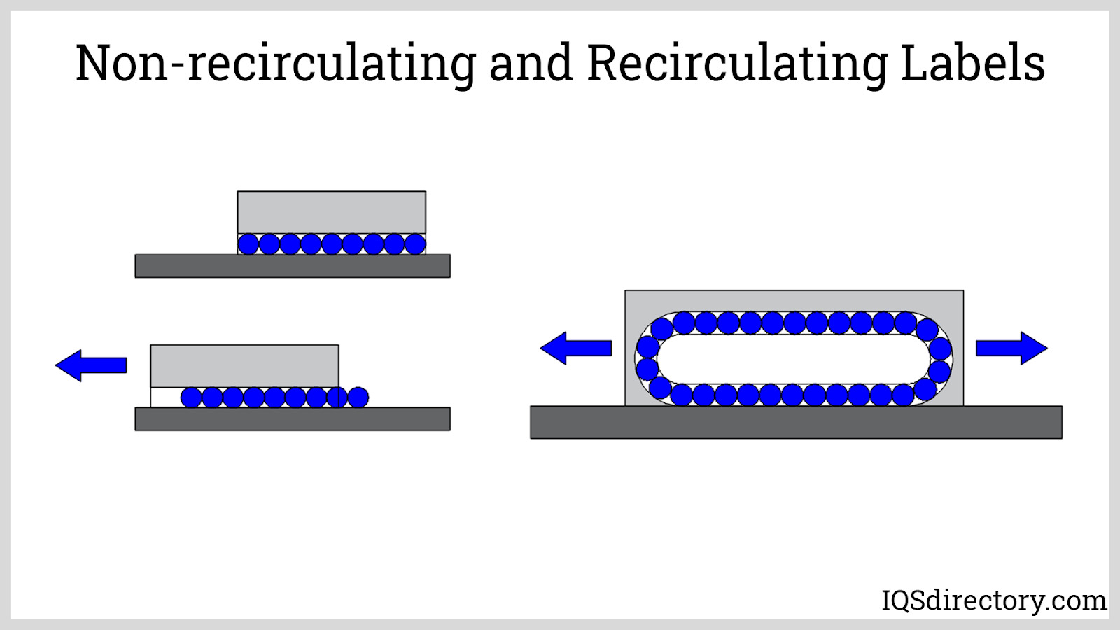 Non-recirculating ball bearings restrict travel to the length of the ball row, while recirculating ball bearings enable continuous movement along the guide rail, offering virtually unlimited stroke length for extended travel applications.