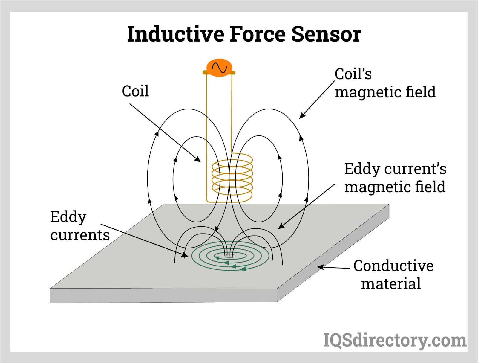 Inductive force sensors excel at low-force detection and displacement measurement. Recent advancements, such as bi-directional inductive force sensors, enable both amplitude and vector direction measurement of applied forces within a single plane—critical for precise automation and robotic feedback systems. In such sensors, Eddy currents induced in a conductor surface by the alternating current (AC) magnetic field of an LC circuit create a back-emf that counteracts the primary magnetic field, reducing sensor inductance. Changes in this inductance directly correspond to mechanical deformation or displacement, forming the basis for quantitatively accurate force sensing.