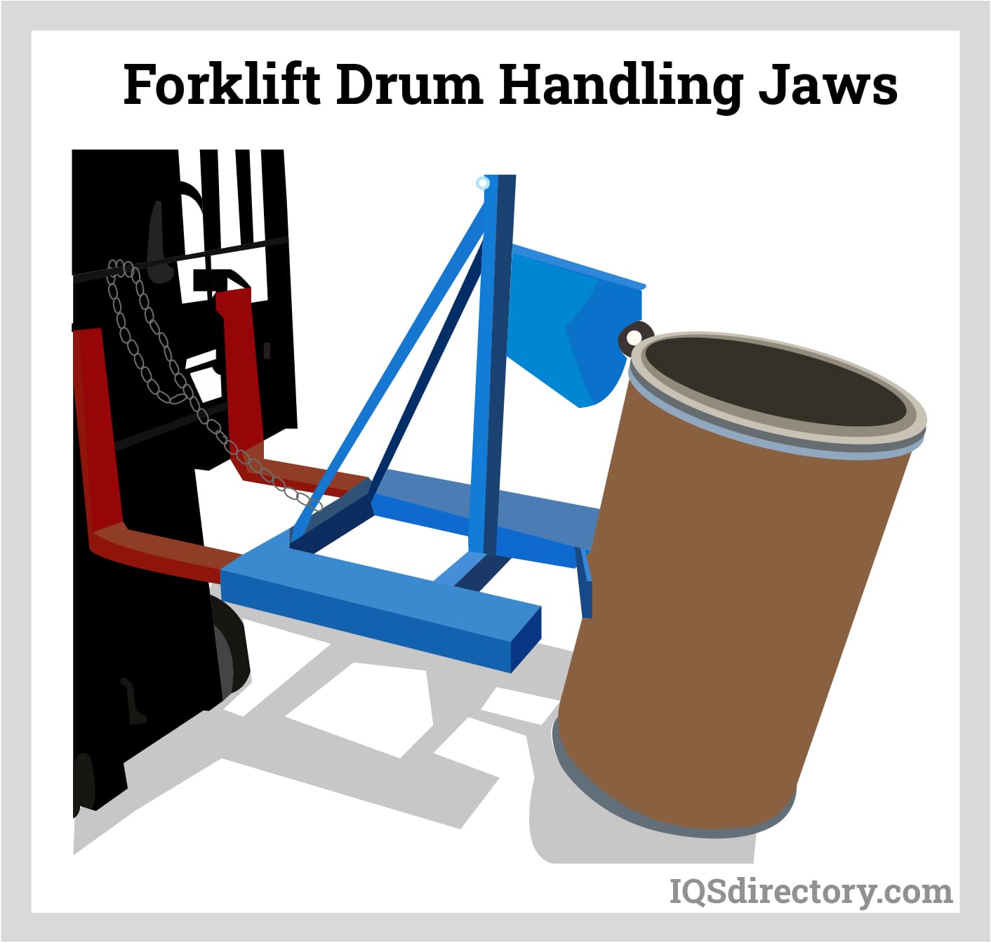 When handling drums, they can be rolled on their sides but should not be dropped. Forklift blades are unsuitable for gripping drum sides; instead, use drum handling jaws on forklifts, which can securely grasp the drum's perimeter.