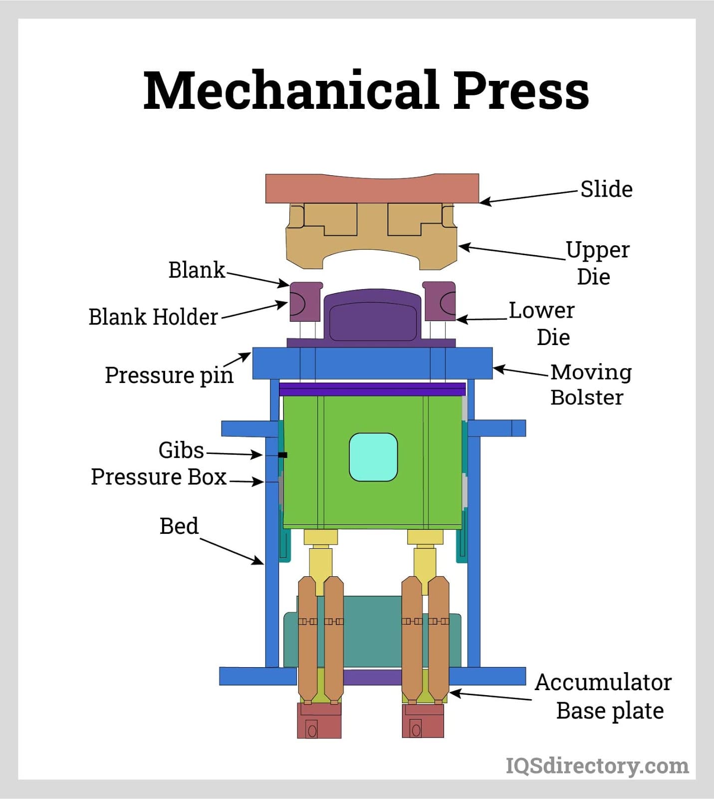 There are four types of die stamping machines: hydraulic, pneumatic, mechanical, and servomotor.