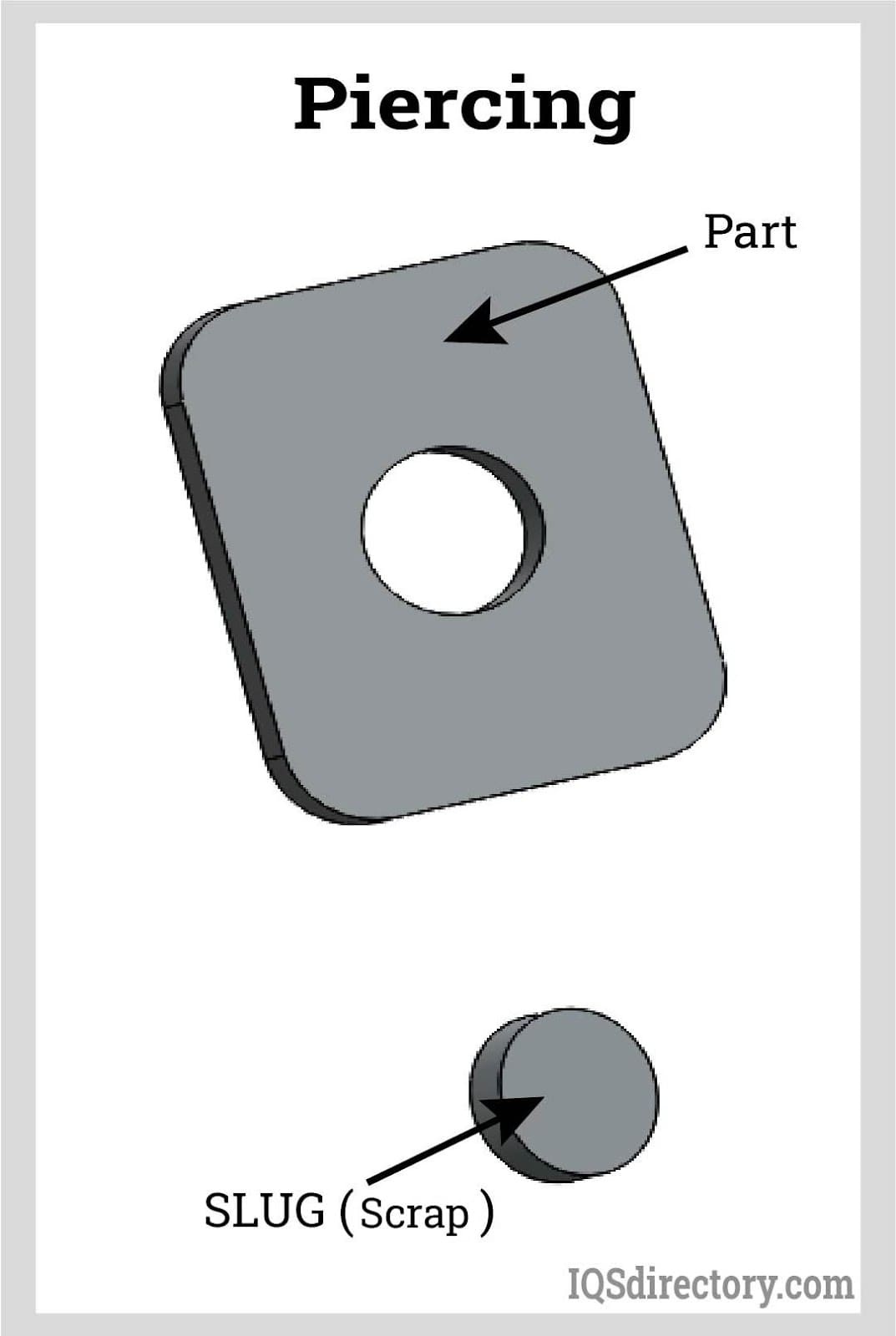 Piercing creates holes or specific internal features in a workpiece using a punch and die set. Unlike blanking—where the cut-out becomes the usable part—in piercing, the punched-out section is scrap while the parent material is retained. The precise sizing and placement of holes or cutouts allow for component assembly, fastener installation, or electrical routing in final products. Piercing operations are crucial in the fabrication of panels, mounting brackets, and electronic housings, where customization and tight tolerances are required.