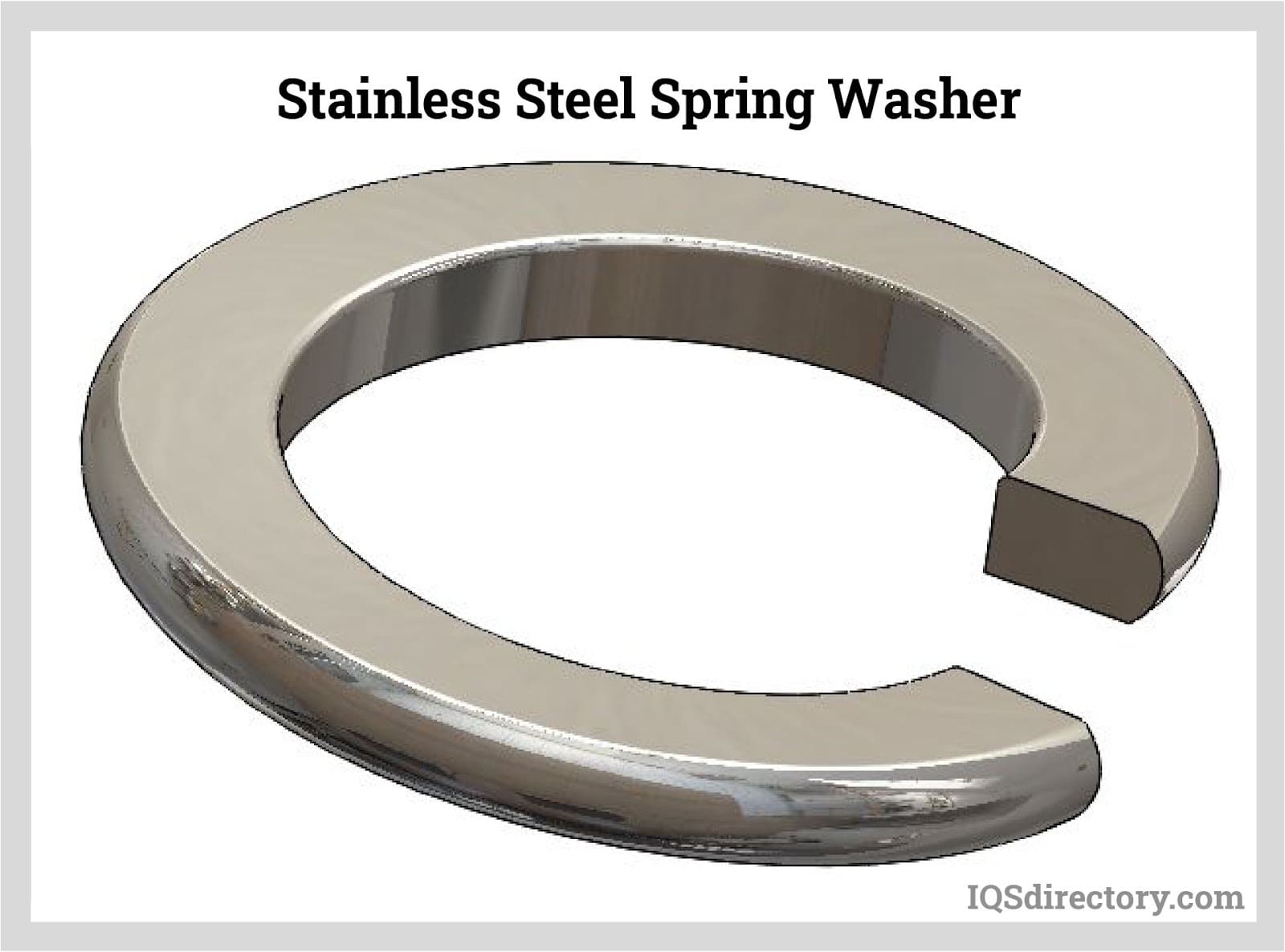 A spring washer features ends that are slightly raised to create spring tension within the metal. Positioned either above or below a nut or bolt, the spring washer's design ensures that as the nut or bolt is tightened, the raised and lowered ends compress to maintain a secure fit and prevent loosening.