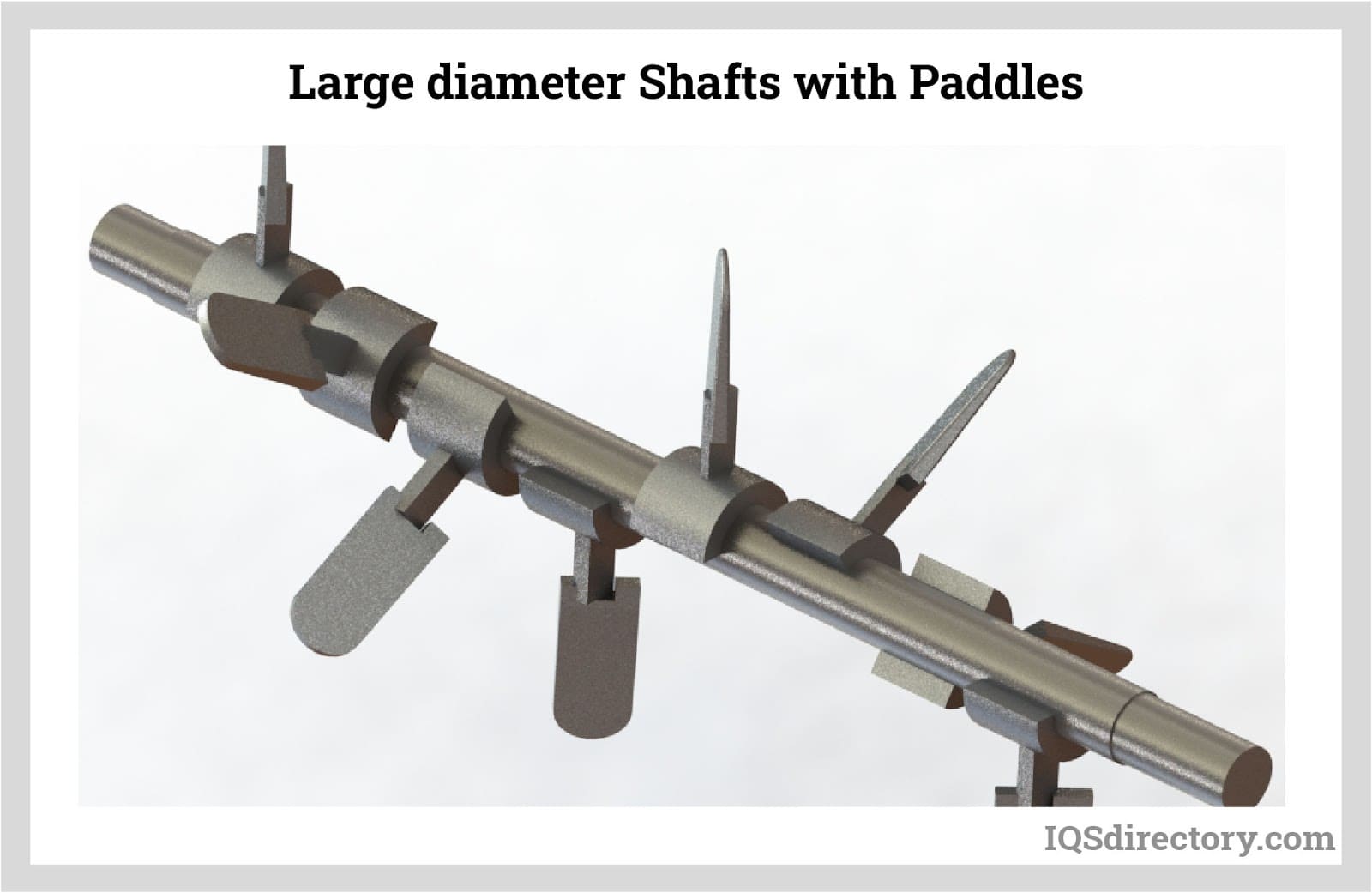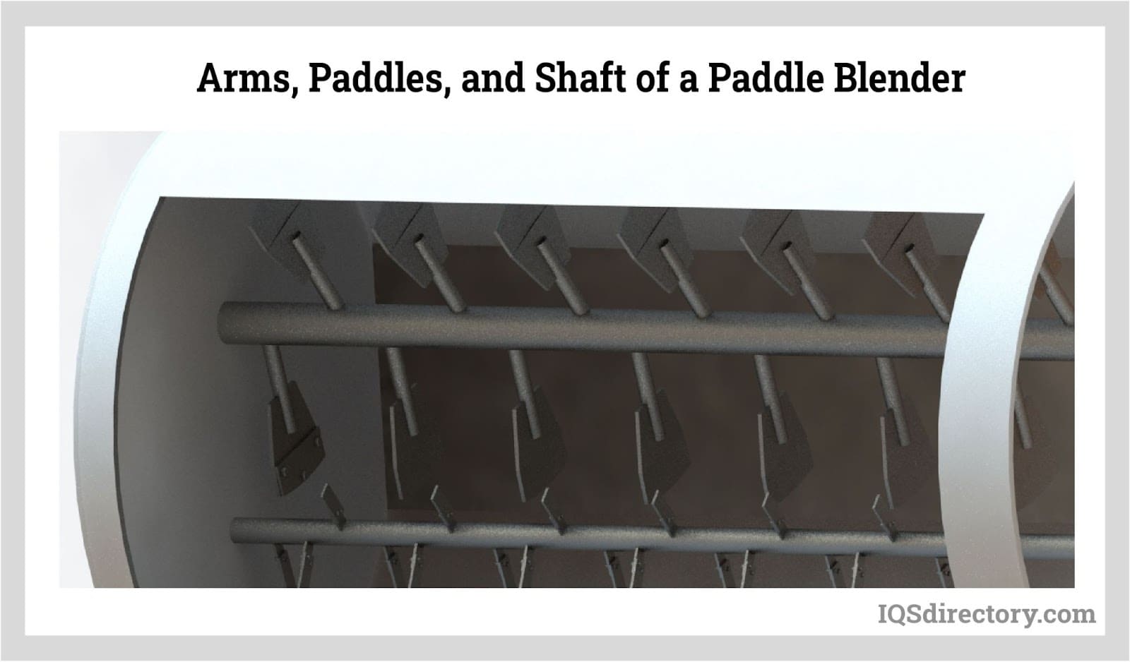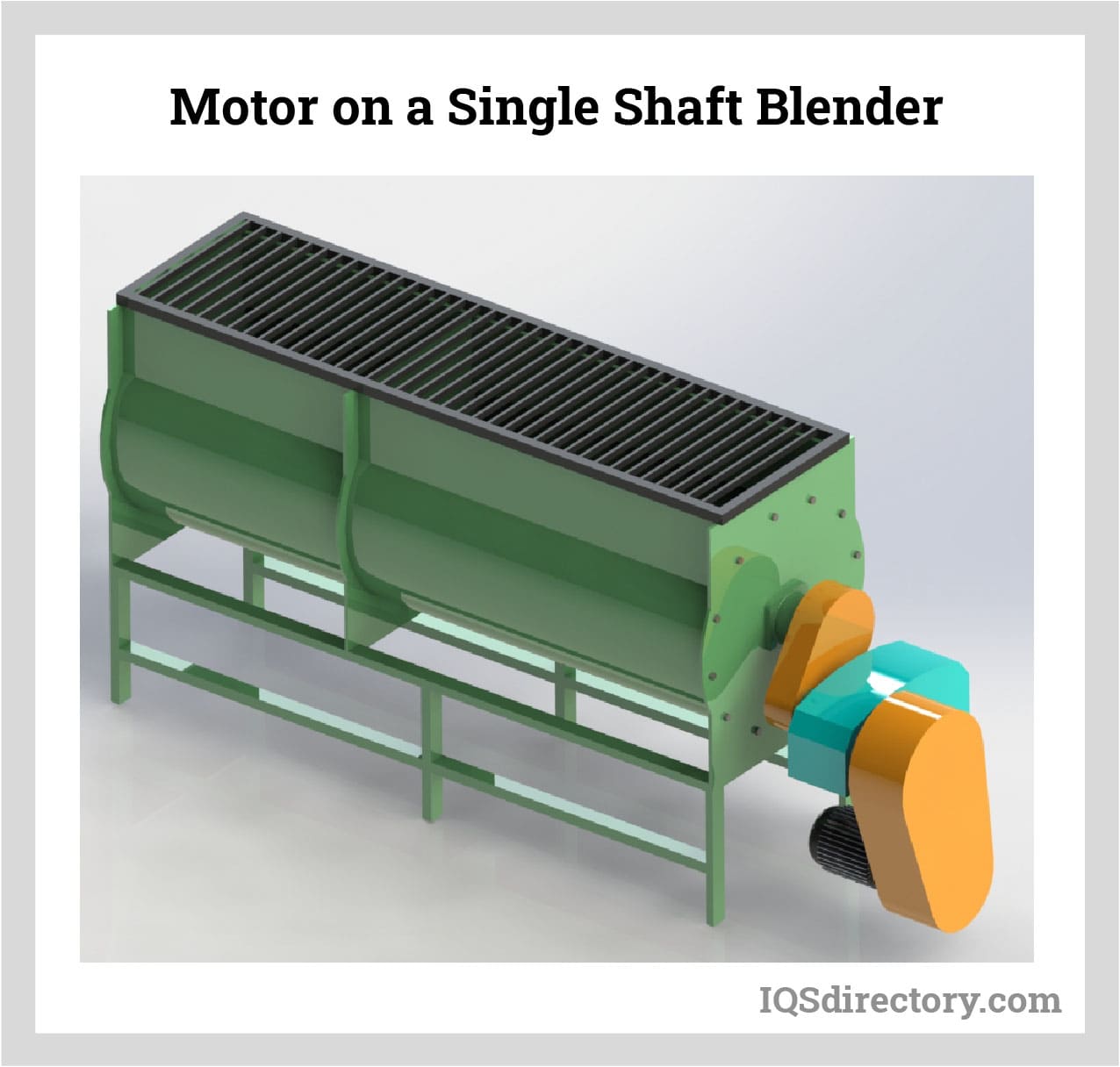 Dual shaft blenders feature two adjacent tubs, each containing a centrally positioned shaft. The shafts may be powered by a single motor using a crossover drive or by separate motors for each shaft. These shafts can rotate in various directions—parallel, opposing, or reversing. Depending on their spacing, the shafts can be positioned close enough to draw material from one another or set farther apart to avoid contact.