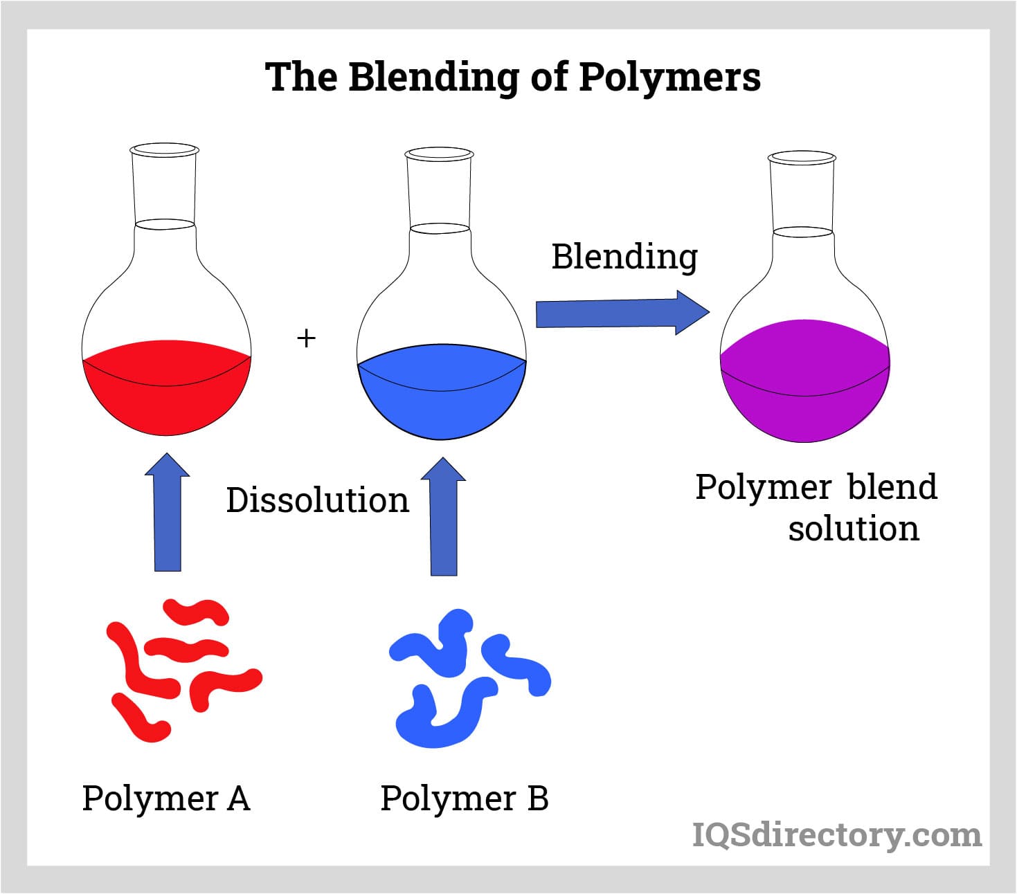 Polymer blending involves combining different polymers without the need for bonding agents. This method aims to quickly and cost-effectively produce materials with unique and complex properties. The resulting blended polymers often exhibit enhanced characteristics compared to the individual polymers, leveraging the strengths of both to create superior materials.