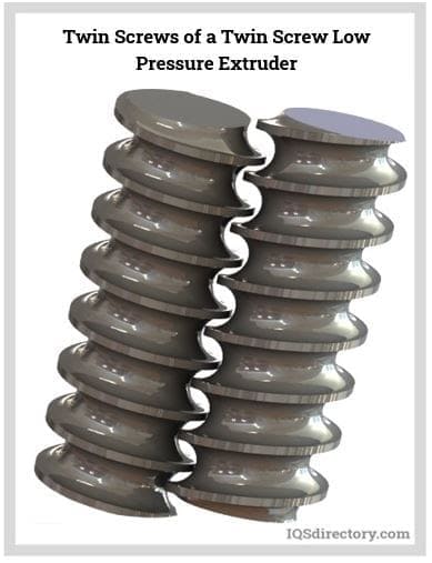 Twin screw low pressure extruders (TSE) are advanced mixers known for their intense, thorough mixing capabilities. Unlike standard extruders, TSEs feature two interlocking screws that enhance mixing efficiency at lower temperatures, which is valuable for shear-sensitive or heat-sensitive formulations. They are often employed in continuous processing lines, allowing for portioning, compounding, and intense premixing before materials are transferred to a high-pressure extruder for shaping or further processing.