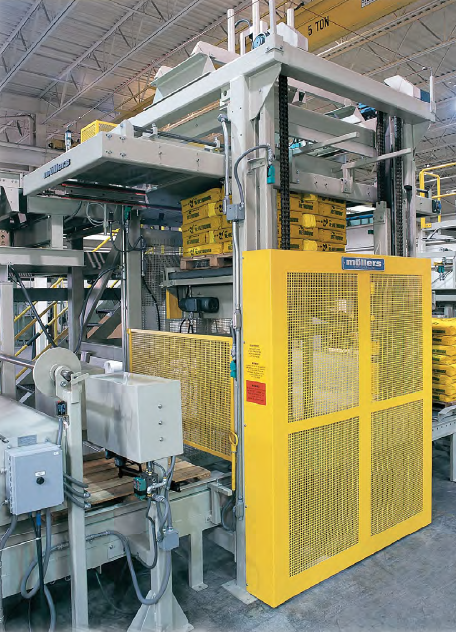 A palletizer is an automated unit load forming machine used to stack and orient several individual products into a single load for a more convenient and economical method of handling, storage, and shipment.