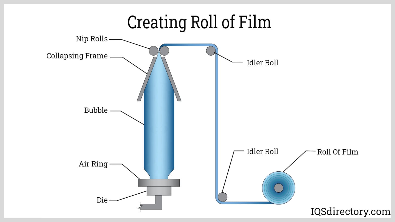 Following cooling, the plastic tube encounters a collapsing frame and then nip rollers, which convert the tube into a flat film format. These high-precision rollers perform several essential functions: