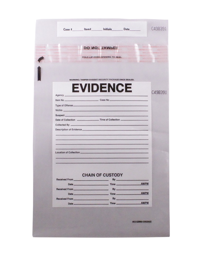 A Tamper-Evident Bag (TEB) is typically made from clear, high-strength, leak-proof plastic with a strong adhesive closure system. Correct evidence handling starts with proper personal protective equipment: forensic examiners and police officers should always use new nitrile or latex gloves to reduce the risk of contaminating samples. For best results during the collection and packaging process: