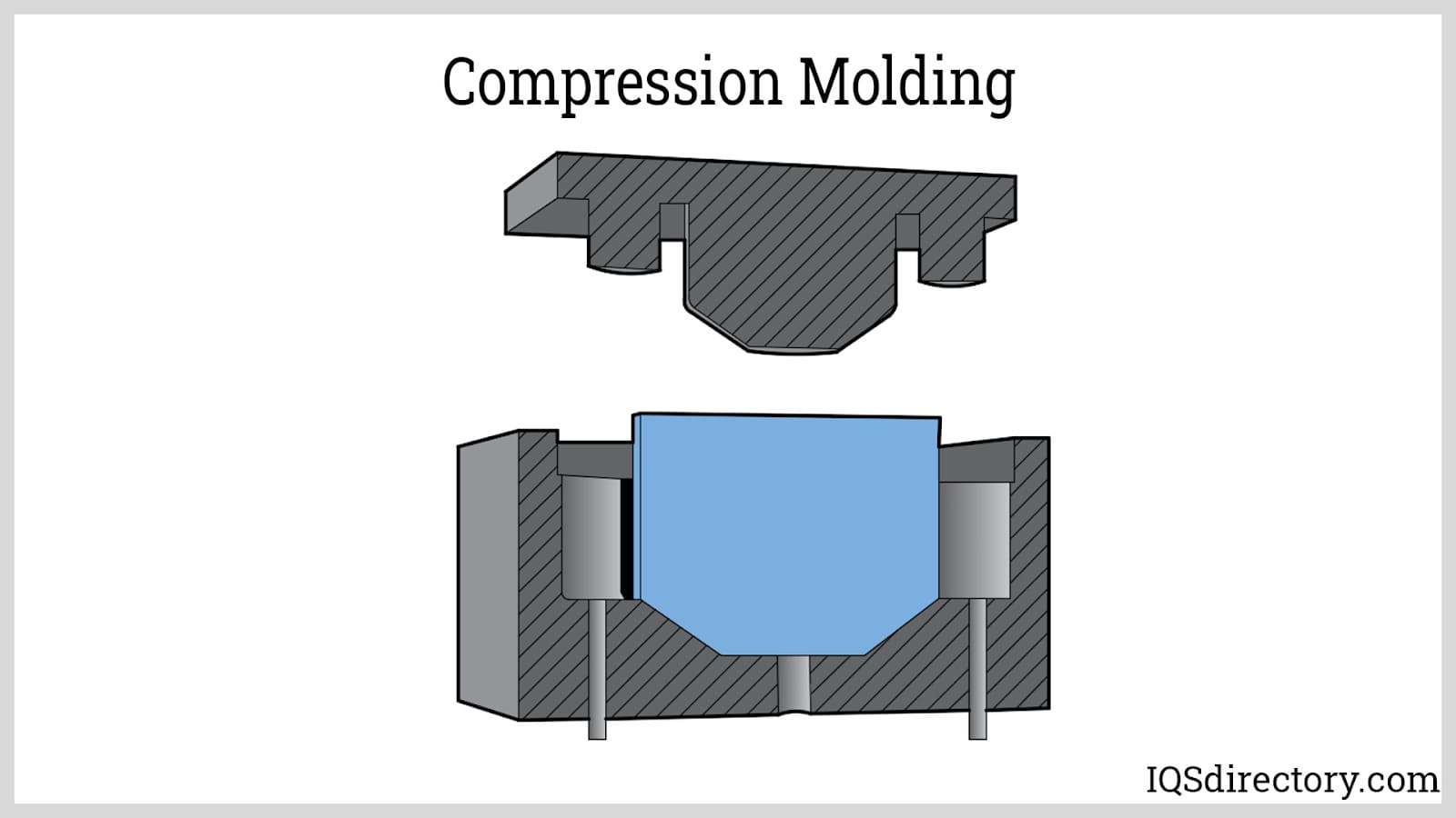 Compression molding forms plastic resin by applying pressure between two molds. This technique is particularly suited for creating large products from thermosetting plastics. The steps involved in the process are outlined below: