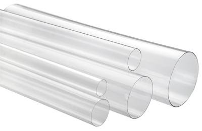 Plastic tubing can be manufactured to achieve clarity comparable to glass while being more durable and less prone to breaking.