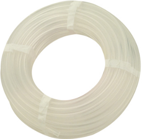 Polypropylene tubing provides enhanced rigidity, a higher melting point, and optical clarity options compared to polyethylene. Its exceptional chemical resistance makes it a popular choice for laboratory setups, aggressive fluid transport, and sterilizable components. Polypropylene tubing remains strong at high temperatures up to 275°F (135 °C) and is often found in medical, agricultural, and analytical chemistry applications.