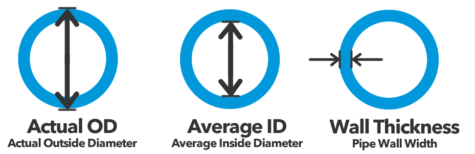Wall thickness is calculated by subtracting the inside diameter (ID) from the outside diameter (OD) and then dividing the result by two.