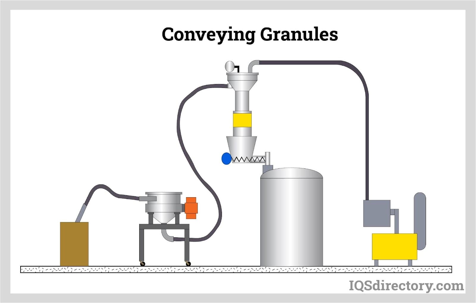 They transport granules and powder without pollution. This is accomplished by the use of closed pipelines in the vacuum conveying transportation. Cleanliness is thus improved, and pollution is minimized.