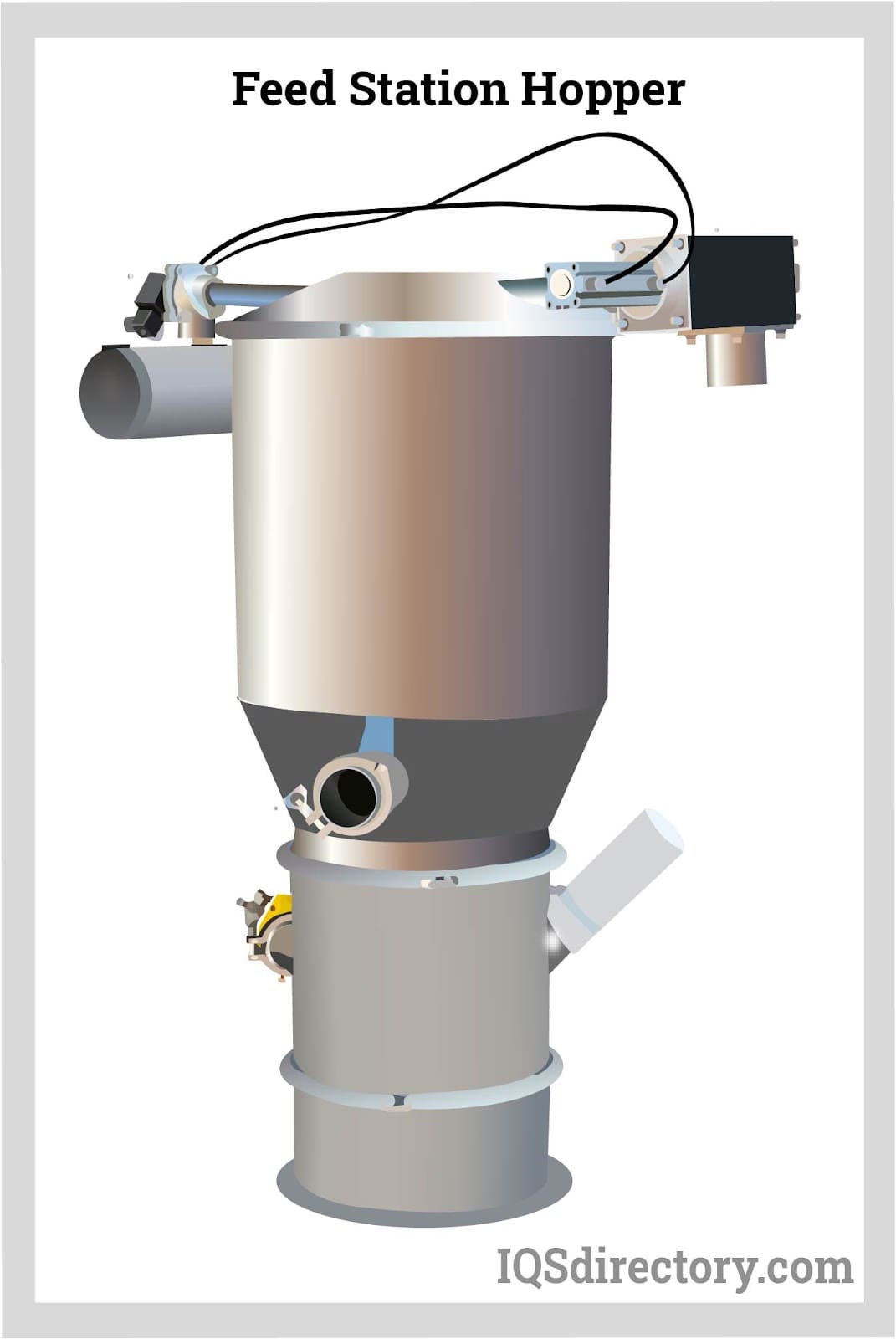 Feed station hoppers serve as an alternative to the feed wand and can be customized to accommodate necessary product specifications, facilitating automation and continuous feed.