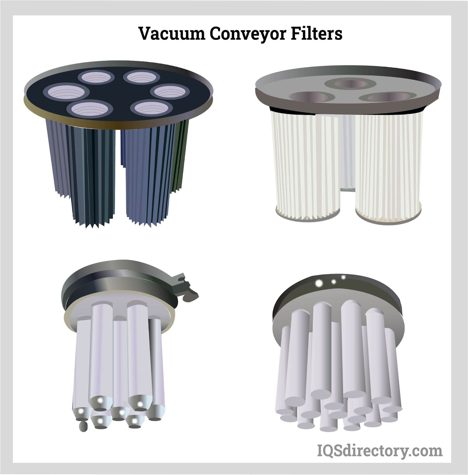 When material-laden air enters the collection container, particle separation occurs due to decreased speed. Clean air exits through the vacuum pump. Filters, which vary based on application, are essential and can be composed of materials like stainless steel, polyethylene, or polyester.