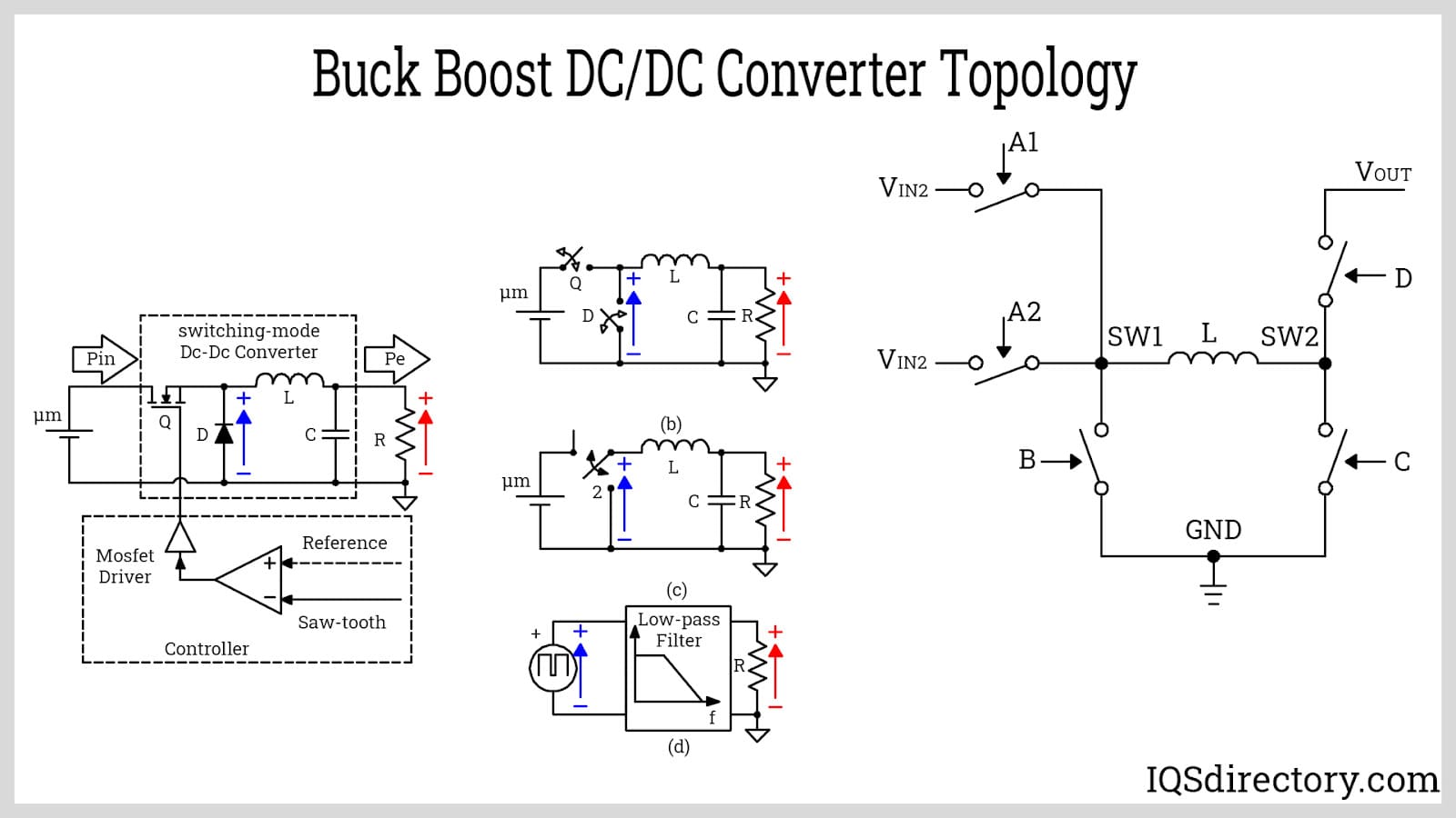 The converter automatically switches between buck mode (when input exceeds output) and boost mode (when input falls below output), all controlled by sophisticated integrated control circuitry that monitors conditions and modulates the switching cycles for seamless voltage regulation. Buck-boost converters also operate as voltage inverters in some configurations, where the output polarity is reversed compared to the input.