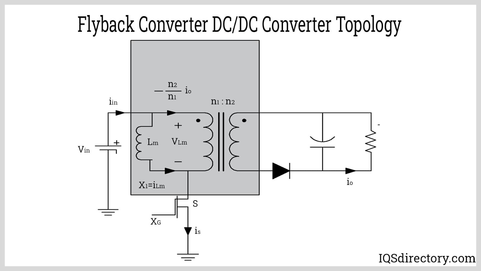 Flyback converters, often used for power levels below 100 W, store energy in magnetic components when switched on and release it when off, often providing input-output voltage isolation to assist with polarity inversion and noise reduction.