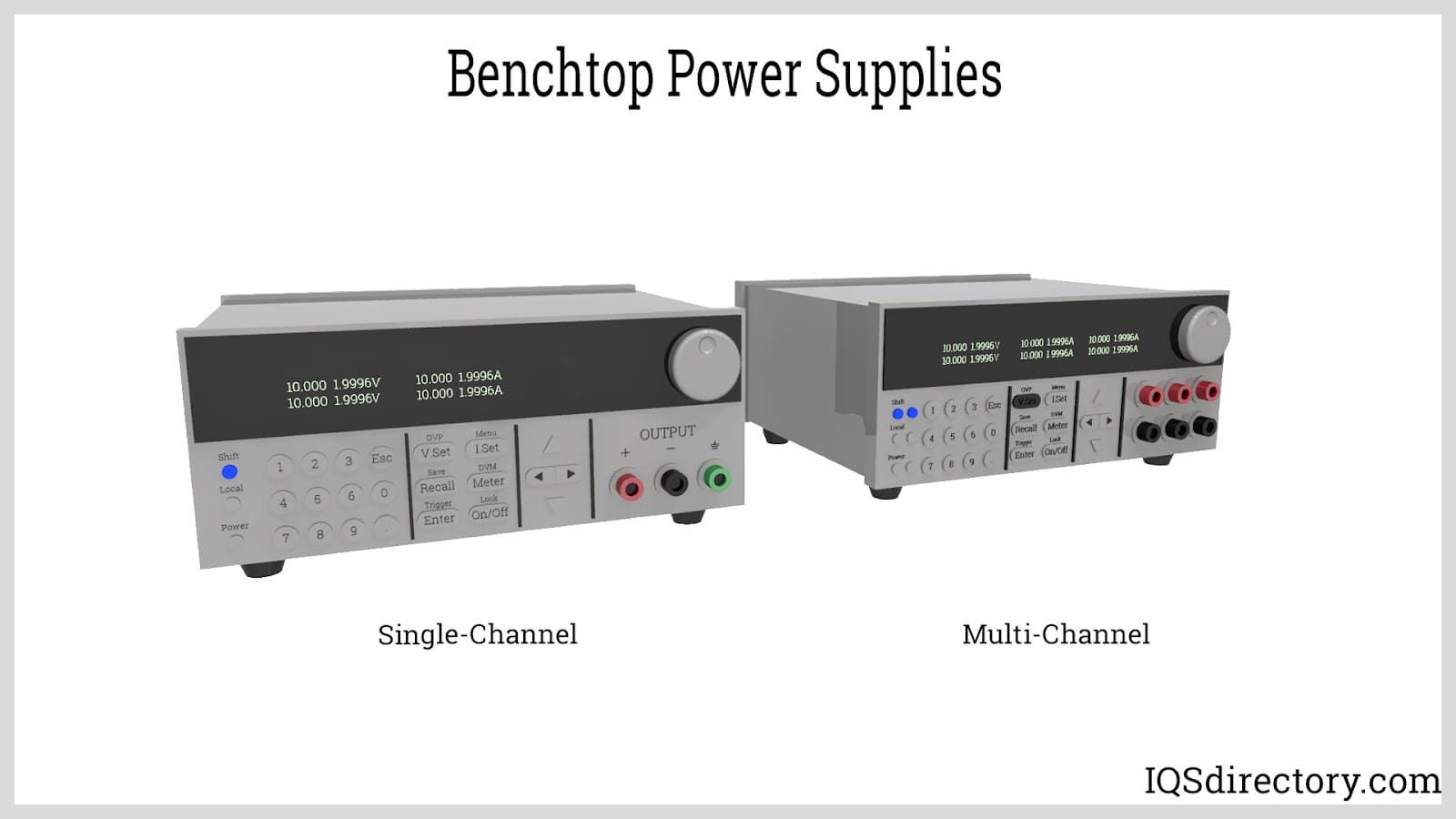 Benchtop models are available with either linear or switching topologies; linear supplies provide excellent noise performance, while switching supplies offer high efficiency and lighter form factors. High-end benchtop programmable power supplies may feature touchscreen interfaces, programmable sequencing, and networked operation for highly automated test setups.