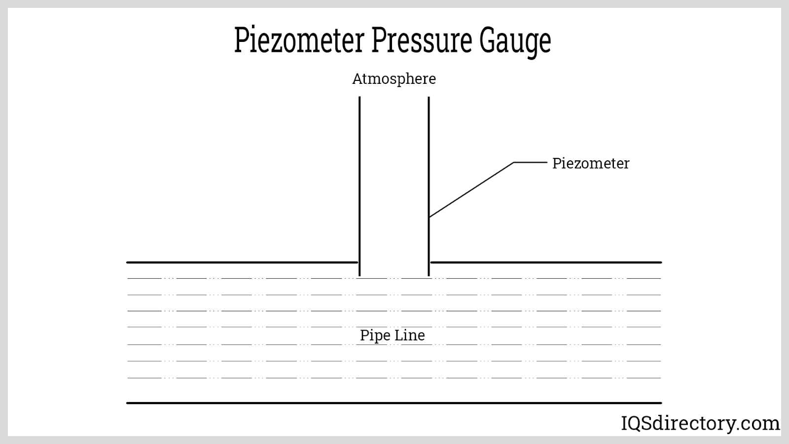 A piezometer is a type of manometer used to measure the pressure of liquids within a medium pressure range. It consists of a simple glass tube open at both ends. One end of the tube is connected to the pipeline where the fluid's pressure is to be measured, while the other end is exposed to the atmosphere. The tube is mounted vertically, allowing the liquid to rise into the tube. The pressure reading is indicated by the height of the fluid within the tube. Piezometer pressure gauges are commonly implemented in geotechnical engineering, groundwater studies, and hydrologic research for straightforward static head measurements.