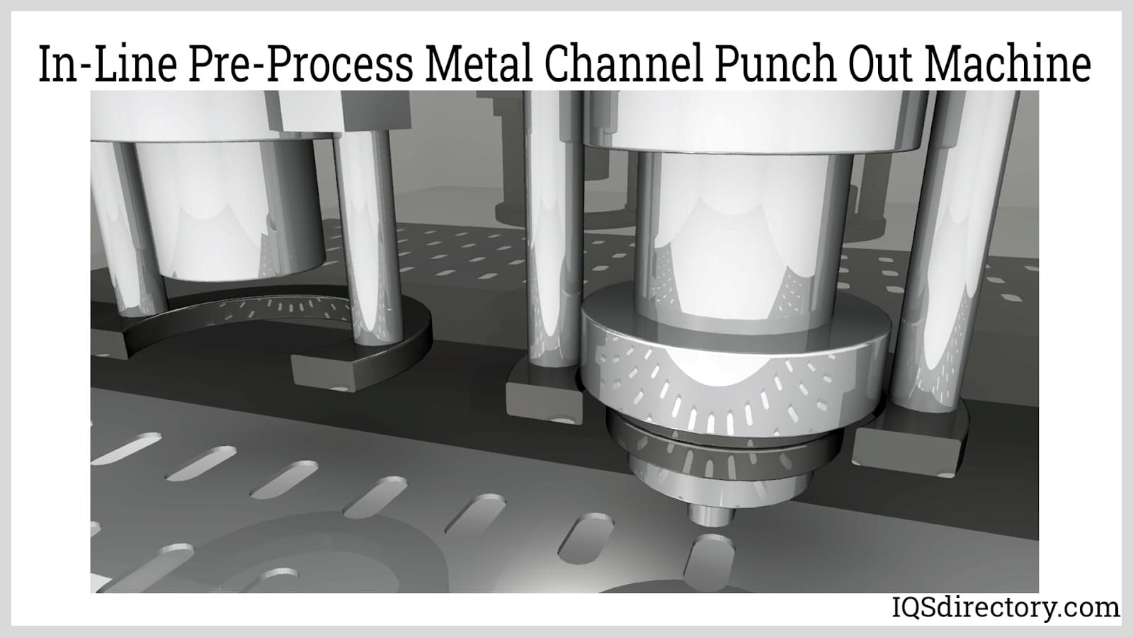 Metal channel roll formed parts often require inline pre-processing such as hole punching, notching, slotting, or embossing, tailored to customer specifications. These operations are performed using high-speed mechanical, pneumatic, or hydraulic punch presses outfitted with precision tooling. Pre-processing delivers tight tolerances and repeatability, ultimately reducing assembly time and downstream fabrication costs for applications in electrical enclosures, framing, and custom supports.