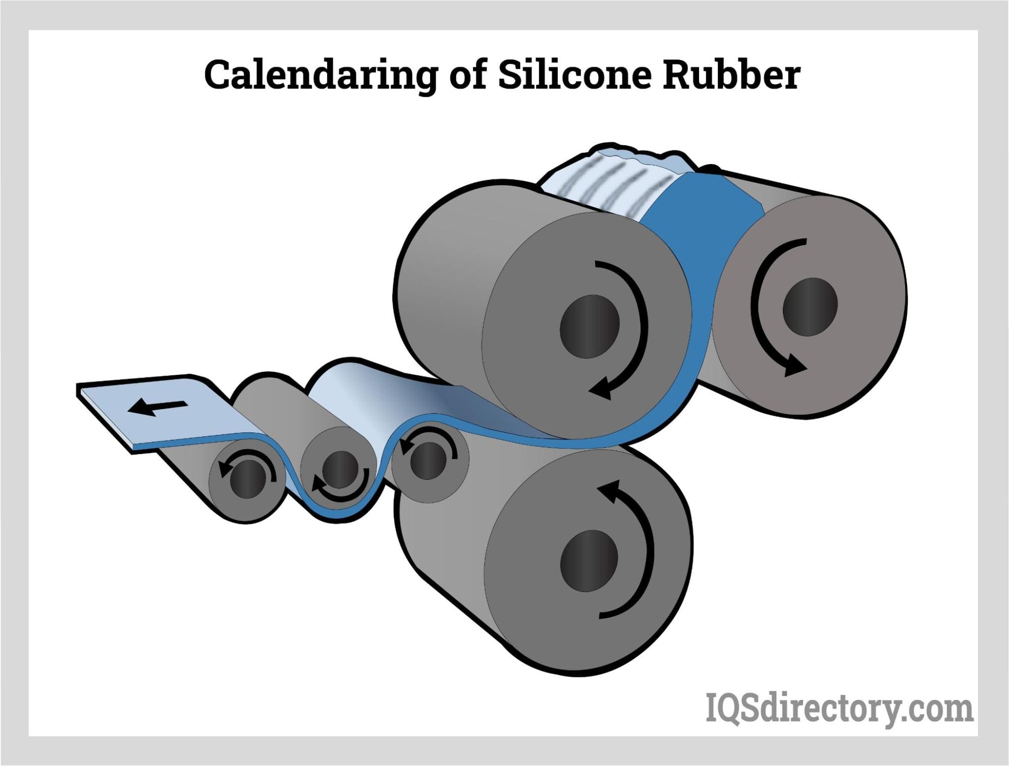 Calendaring is a method used to produce thin silicone rubber sheets using rollers or bowls, where each roller turns in the opposite direction to its counterpart at a consistent and controlled speed. In a pair of rollers, one has a nip adjustment that regulates the thickness of the silicone rubber. A silicone rubber calendar may have two or more rollers. The silicone material is heated and introduced into the rollers in strip or pig form on one side of the nip, where it is compressed to create sheets of silicone rubber.