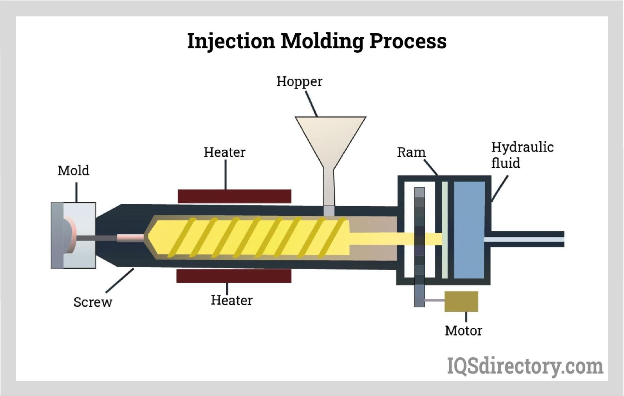 Injection molding is the most common process for forming silicone rubber parts that vary in size, complexity, and final application. The process involves the use of a screw type plunger that is similar to that of an extruder. As with an extruder, the raw silicone material is loaded into a hopper connected to the barrel and screw. The material is heated as it moves along the barrel toward a tightly sealed die that has the shape of the final part. The pressure created by the movement of the screw forces the raw material into every portion of the die.