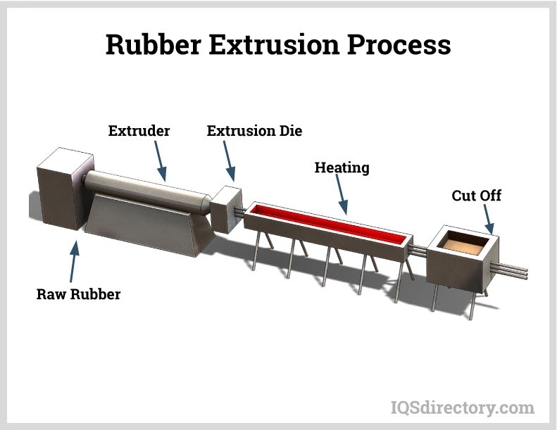 Extruded rubber is a group of products made by softening and pressurizing an elastomeric compound and forcing it to flow through a hard tool called a die. The resulting product is a continuous piece of material that has the same cross-section throughout its length...