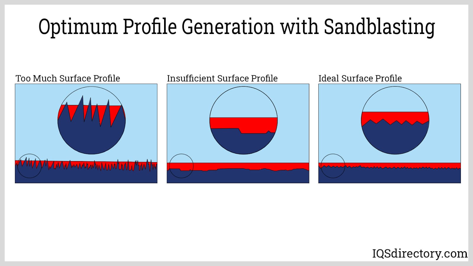 Sandblasting is exceptional at the critical step of cleaning and surface preparation before the application of coatings, adhesives, and sealants. Sandblasting creates undercuts on the surface of a part, which improves adhesion by allowing coatings and adhesives to mechanically grip onto the surface.