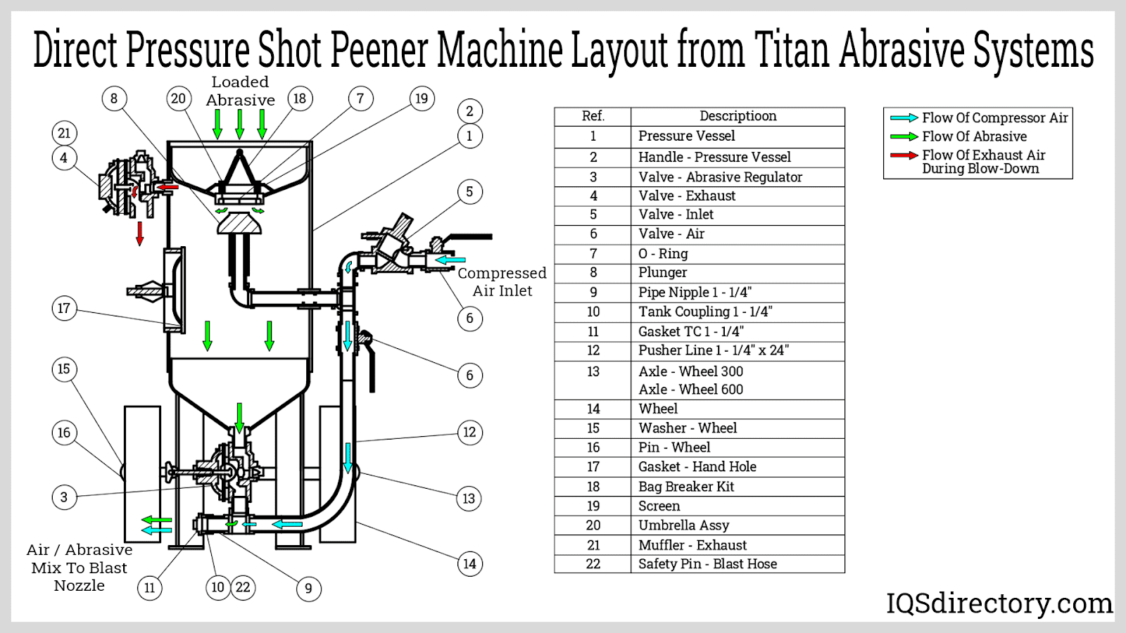 Direct pressure abrasive shot peening equipment employ pressurized vessels to accelerate and deliver shot media through blast hoses and specialized shot peening guns. Pressure vessels—typically constructed to adhere to rigorous ASME BPV Code standards—ensure both operator safety and consistent process performance.