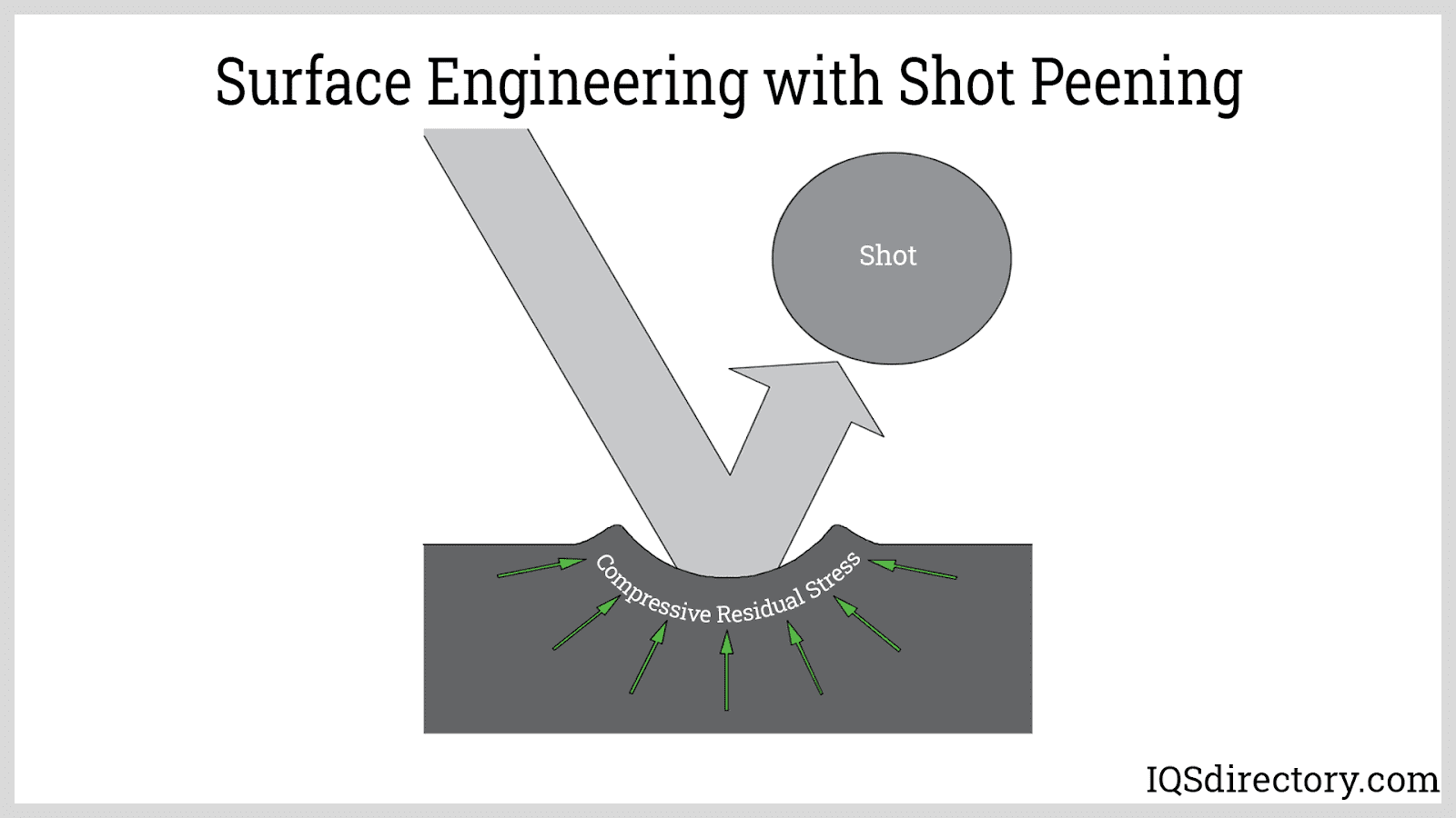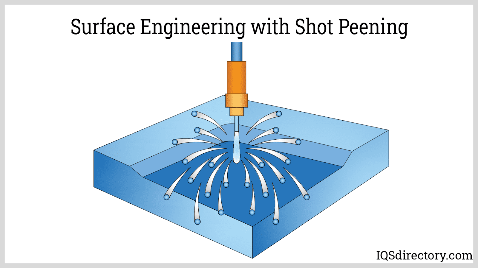 Shot peening is a cold working process used to modify the mechanical properties of components by generating compressive stress on their surfaces. This technique boosts component strength while optimizing its stress profile. It extends component lifespan by increasing resistance to fatigue, corrosion, cavitation erosion, and cracking. The required level of compressive stress varies based on the intensity and scope of the peening media applied.
