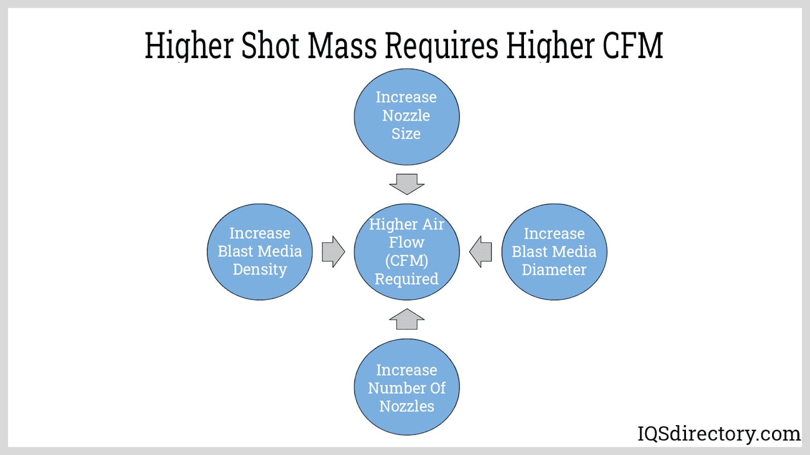 Denser and larger-diameter media such as metal shot and metal grit is fast but requires high flow (CFM) pressure shot peeners or wheel shot peeners.
